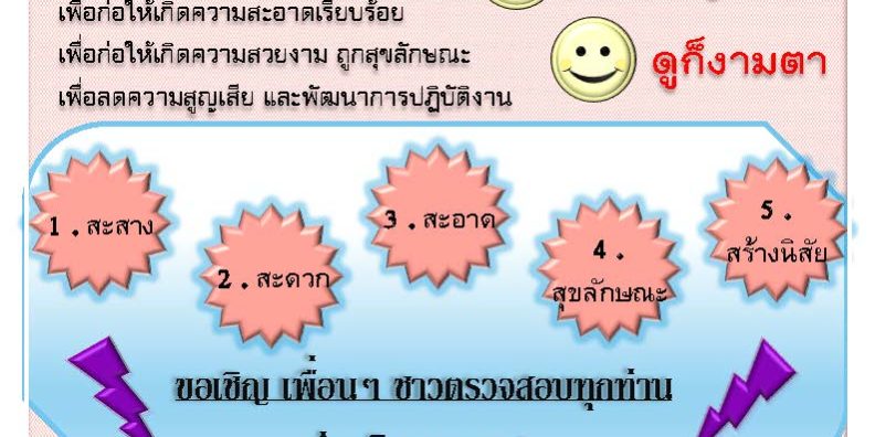 สำนักงานตรวจสอบมีนโยบายให้เจ้าหน้าที่ตรวจสอบทุกคนดำเนินการตามมาตรฐาน 5 ส. ของสำนักงานตรวจสอบ และได้จัดกิจกรรม 5 ส. ในระหว่างเดือนเมษายน – มิถุนายน 2560