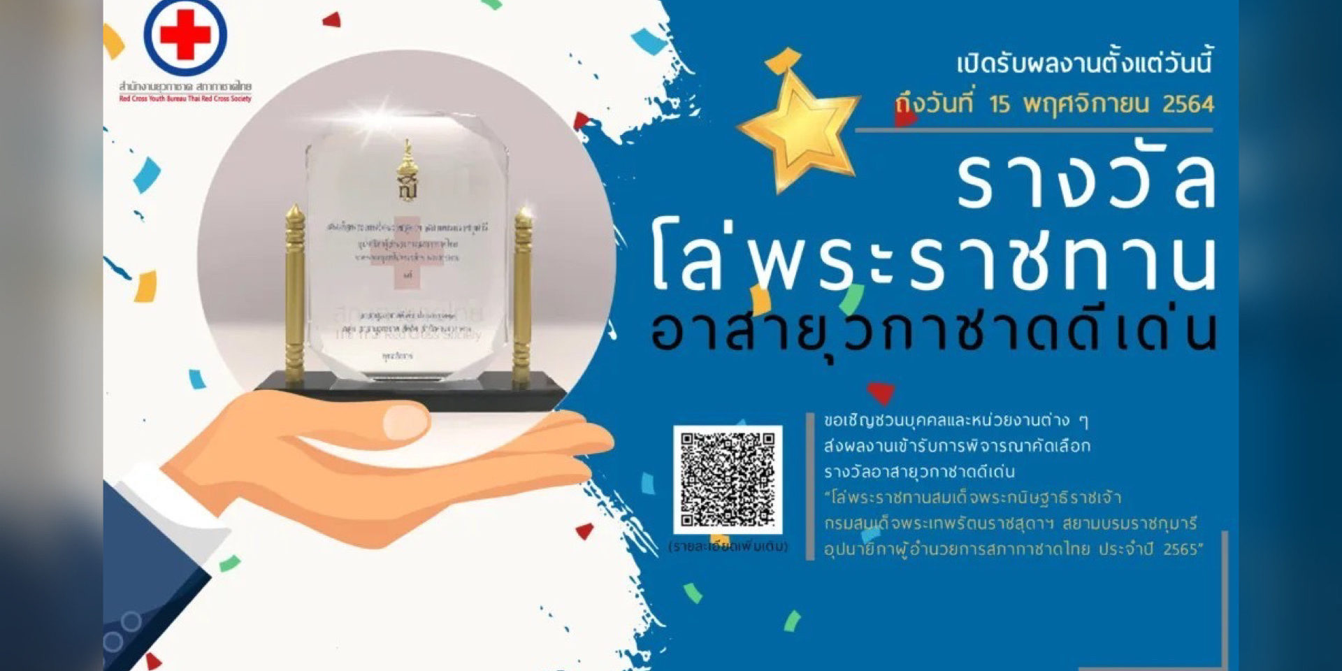 สำนักงานยุวกาชาด สภากาชาดไทย ขอเชิญส่งผลงาน เข้ารับการพิจารณาคัดเลือกรางวัลอาสายุวกาชาดดีเด่น โล่รางวัลพระราชทานสมเด็จพระกนิษฐาธิราชเจ้า กรมสมเด็จพระเทพรัตนราชสุดา ฯ สยามบรมราชกุมารี อุปนายิกาผู้อำนวยการสภากาชาดไทย ประจำปี 2565 เพื่อแสดงความชื่นชม สร้างขวัญกำลังใจ รวมทั้งเป็นเกียรติประวัติแก่คณะบุคคลและหน่วยงานต่าง ๆ ที่ให้ความร่วมมือ เสียสละ และให้การสนับสนุนกิจการยุวกาชาดด้วยดีมาโดยตลอด