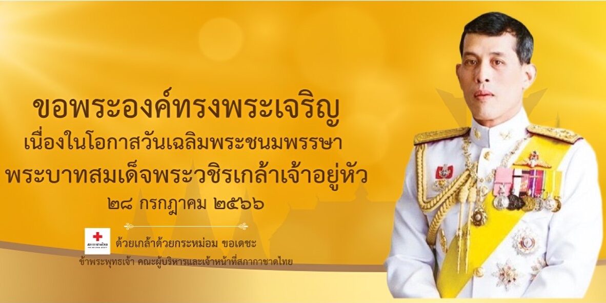 ก.ค.262023ข่าวประชาสัมพันธ์ ขอพระองค์ทรงพระเจริญ เนื่องในโอกาสวันเฉลิมพระชนมพรรษา พระบาทสมเด็จพระวชิรเกล้าเจ้าอยู่หัว ๒๘ กรกฎาคม ๒๕๖๖ ด้วยเกล้าด้วยกระหม่อม ข้าพระพุทธเจ้า คณะผู้บริหารและเจ้าหน้าที่สภากาชาดไทย เครดิดข้อมูล : www.redcross.or.th ร่วมลงนามถวายพระพรออนไลน์ Category: ข่าวประชาสัมพันธ์By รวิกานดา น้ำดอกไม้กรกฎาคม 26, 2023 Author: รวิกานดา น้ำดอกไม้ Post navigationPreviousPrevious post:เนื่องในโอกาสวันเฉลิมพระชนมพรรษา สมเด็จพระนางเจ้าสุทิดา พัชรสุธาพิมลลักษณ พระบรมราชินี ๓ มิถุนายน ๒๕๖๖NextNext post:เนื่องในโอกาสวันเฉลิมพระชนมพรรษาสมเด็จพระนางเจ้าสิริกิติ์ พระบรมราชินีนาถ พระบรมราชชนนีพันปีหลวง 12 สิงหาคม 2566Related Postsเนื่องในโอกาสวันเฉลิมพระชนมพรรษาสมเด็จพระนางเจ้าสิริกิติ์ พระบรมราชินีนาถ พระบรมราชชนนีพันปีหลวง 12 สิงหาคม 2568สิงหาคม 12, 2025เนื่องในโอกาสวันเฉลิมพระชนมพรรษา พระบาทสมเด็จพระวชิรเกล้าเจ้าอยู่หัว ๒๘ กรกฎาคม ๒๕๖๘กรกฎาคม 25, 2025ความช่วยเหลือจากสภากาชาดไทยสู่ผู้ประสบภัยแผ่นดินไหวในเมียนมาเมษายน 4, 2025จักษุแพทย์จากสภากาชาดไทยได้รับรางวัลเฮนรี่ เดวิสัน รางวัลระดับนานาชาติสำหรับบุคคลที่อุทิศตนเพื่อส่งเสริมคุณภาพชีวิตของบุคคลที่เดือดร้อนและด้อยโอกาสพฤศจิกายน 8, 2024รวมพลังสร้างสรรค์แผนประชาสัมพันธ์ โครงการ “TRCs BRAND CHAMPIONS”กันยายน 20, 2024เนื่องในโอกาสวันเฉลิมพระชนมพรรษาสมเด็จพระนางเจ้าสิริกิติ์ พระบรมราชินีนาถ พระบรมราชชนนีพันปีหลวง 12 สิงหาคม 2567สิงหาคม 8, 2024